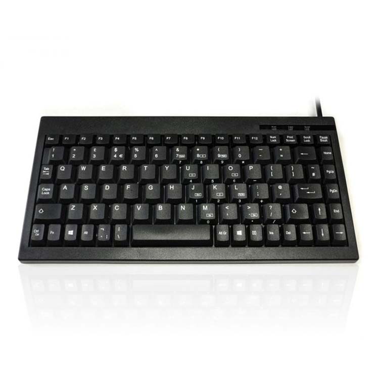 The Accuratus 595 has a small footprint for those applications where space is limited, such as in retail, server rack draws or at home. A big winner with major retail stores, this beautifully constructed keyboard offers all the facilities of a standard keyboard, but in a mini layout.