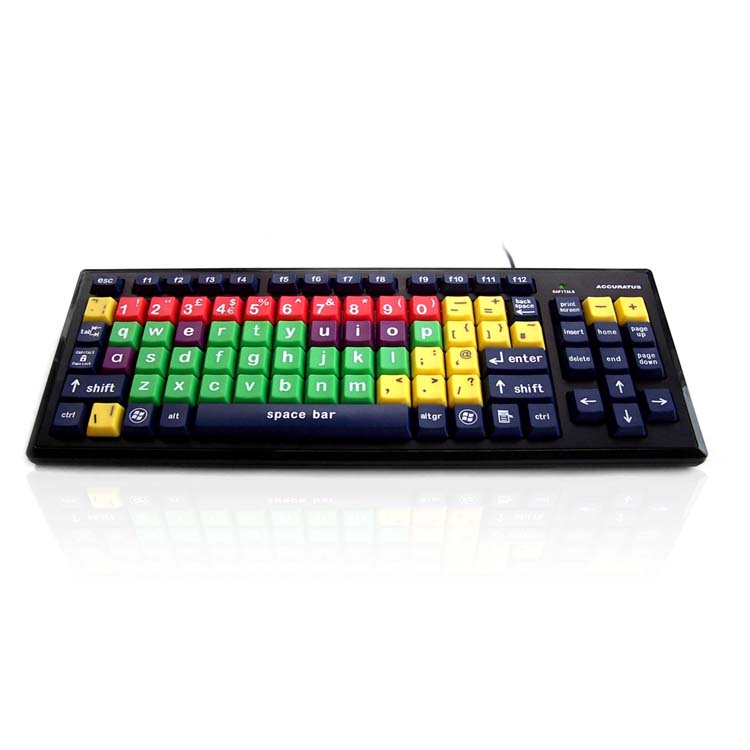 For young children the Monster 2 Mix is the perfect entry into computing, with large oversized keys grouped in different colours making learning easy and fun. High Visibility & High Contrast models designed for users with vision impairment offer even greater clarity, with high visibility large black legends against a bright yellow background, or large black legends on a high contrast white background.