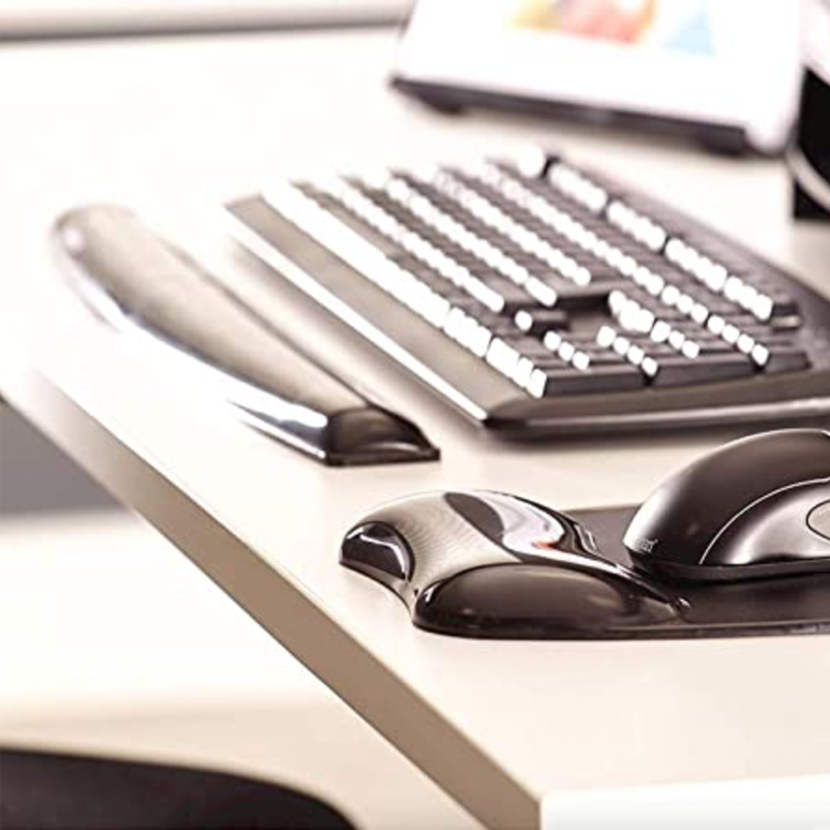 The Fellowes Crystal Keyboard Rest that helps to relieve the aches and strains associated with extended computer use.