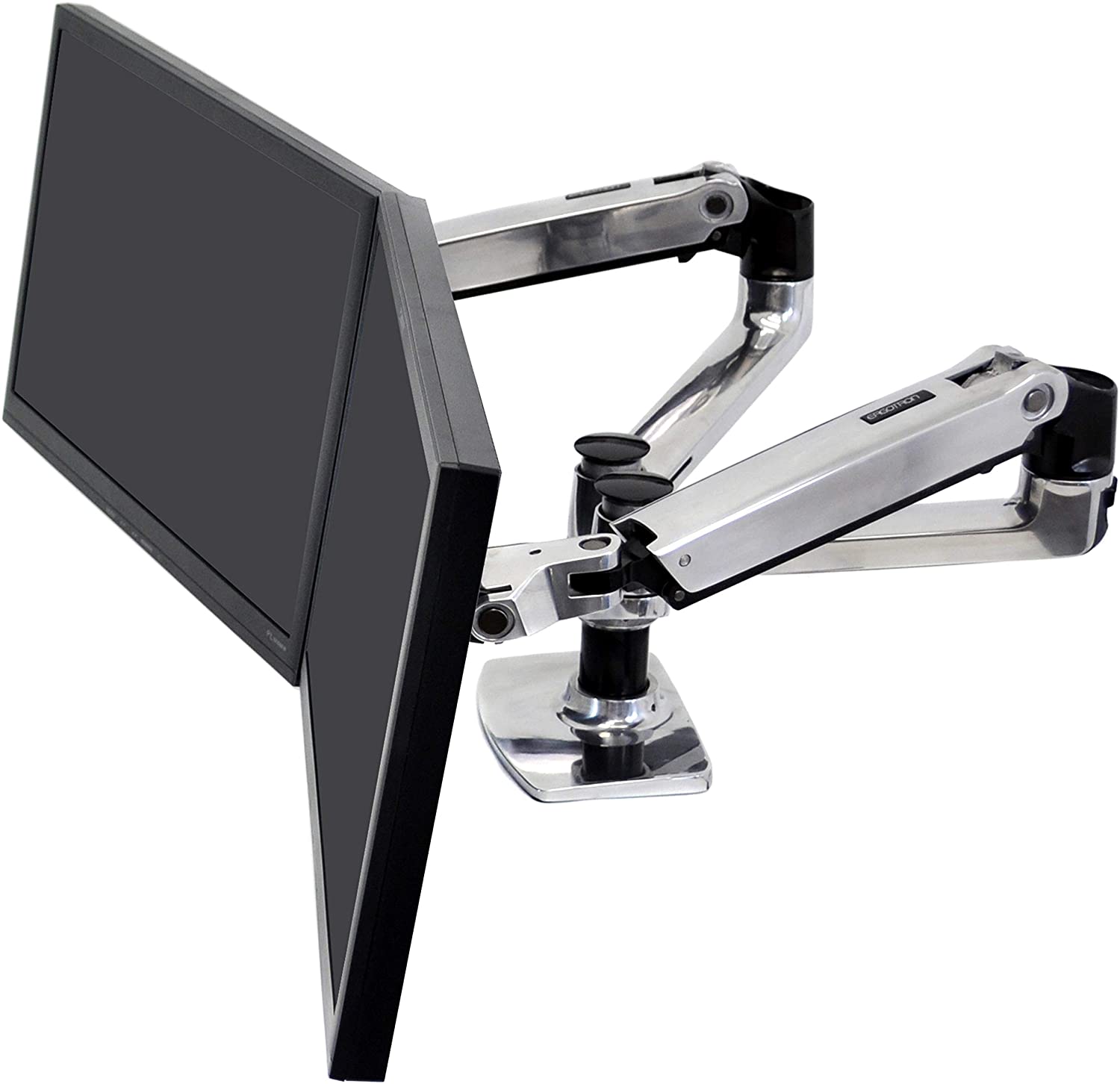 Ergotron allows you to position monitors for increased productivity. It also lifts the monitors above the desktop creating valuable desk space.