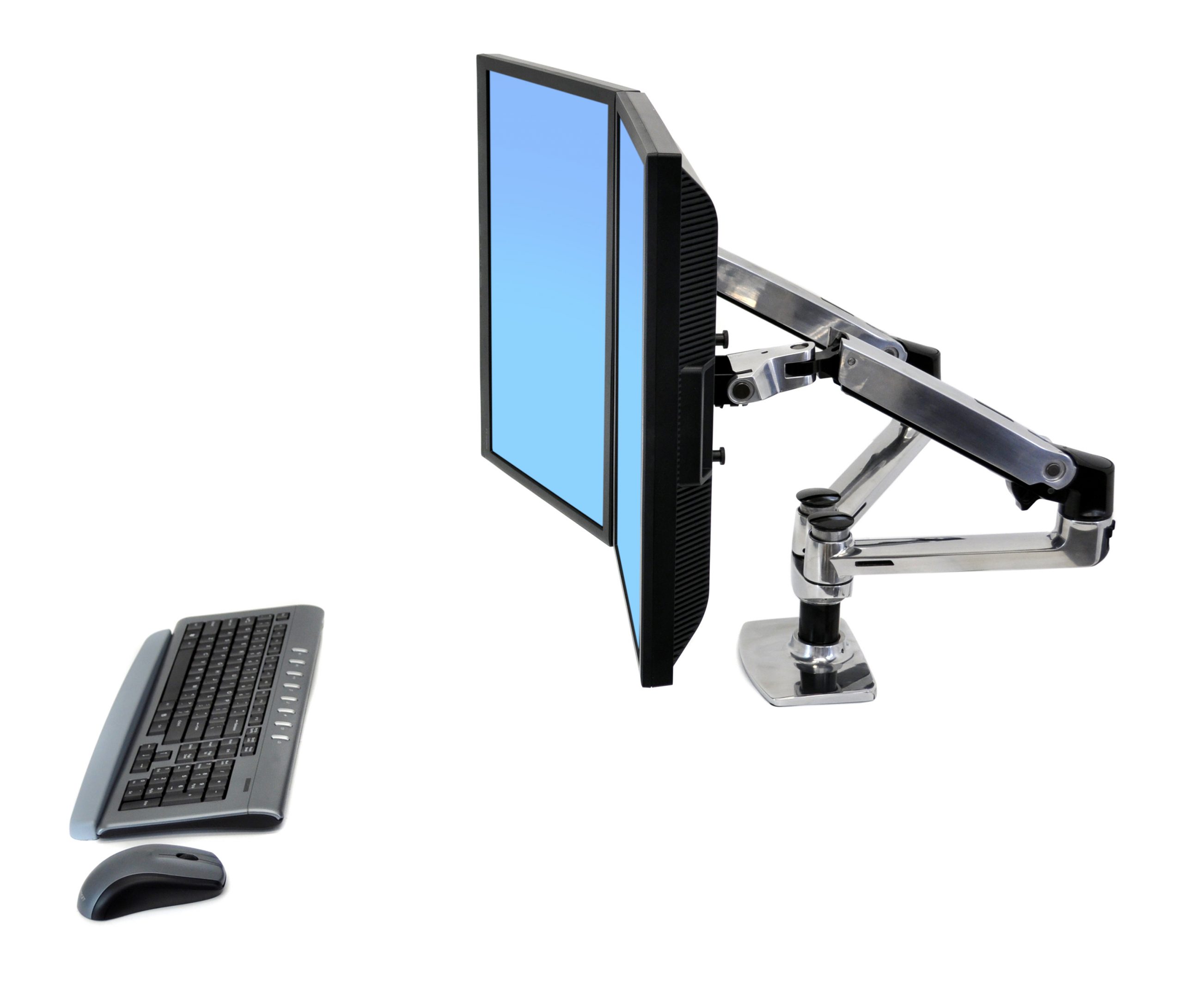 Durable steel and polished aluminium construction. Create a fully adjustable side-by-side monitor configuration that lifts both LCD screens up to where they’re easier to see while reclaiming valuable worksurface. Reposition your LCDs with just a touch. Up. Down. Forward. Back. The LX provides unparalleled range of motion. Save time by using multiple applications at once – eliminate toggling back and forth between documents and programs.