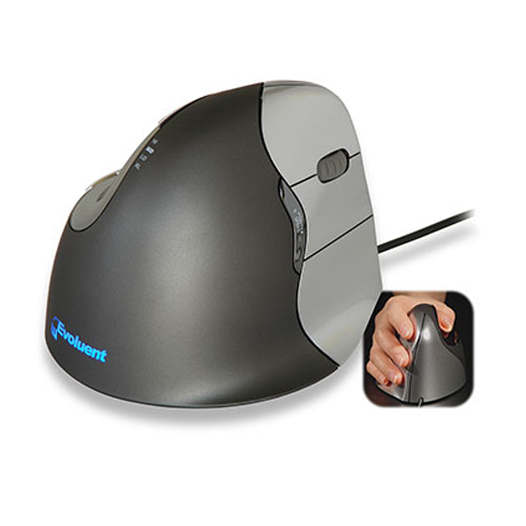 The VerticalMouse 4 by Evoluent helps avoids forearm twisting for comfort and good health. The shape is thoughtfully sculpted for uncompromising comfort and easy-to-reach programmable buttons.