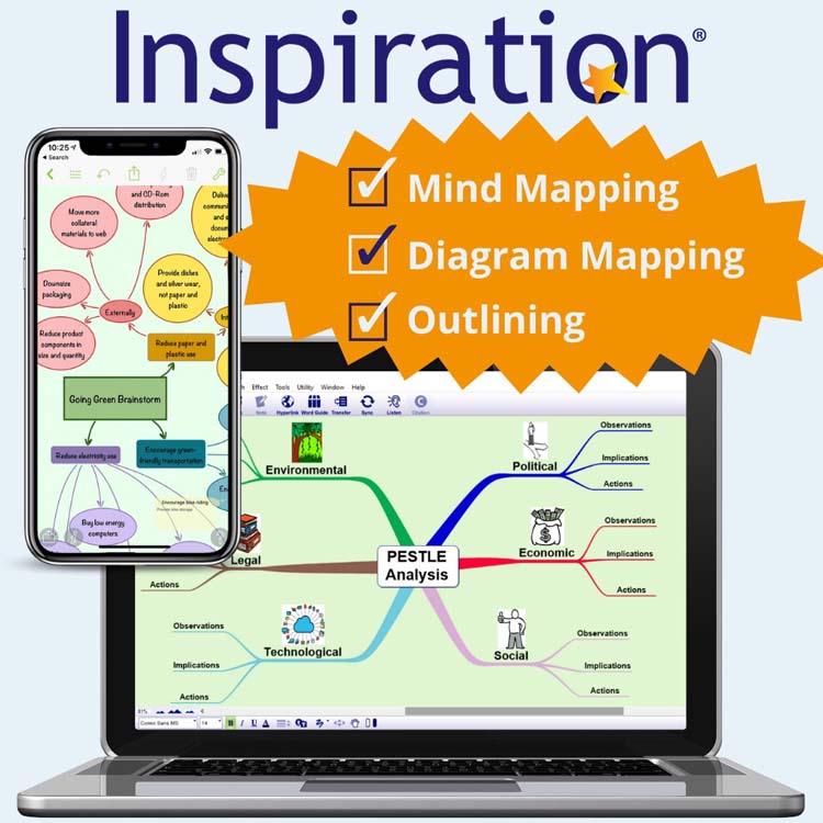 Inspiration 11 is a simple but powerful visual thinking tool for creating mind maps, concept maps, graphic organisers, outlines and presentations with ease! Inspiration 11 boosts creativity and breaks down barriers to planning, communicating ideas and learning; helping users to achieve more personally, academically and in the workplace.