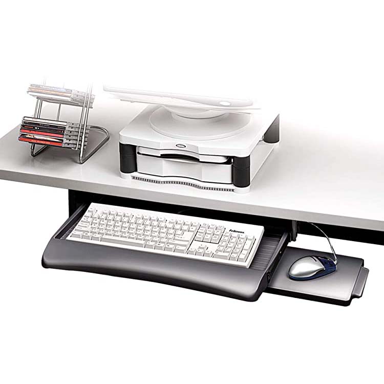 Simple and effective keyboard tray, ideal for converting conventional desks to a more conventional workstation. Retractable mouse tray installs on left or right-hand side with a smooth and silent gliding motion.