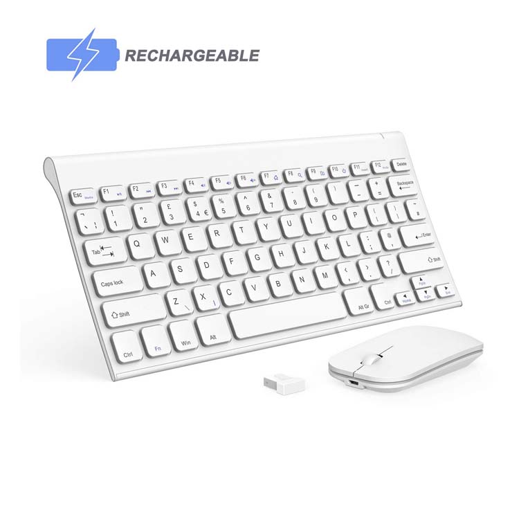 This wireless keyboard and mouse are rechargeable by using the micro USB cable provided. You can use both for 3 months on a single charge. The body is made of a combination of high grade ABS materials, giving the user a superior computing experience.